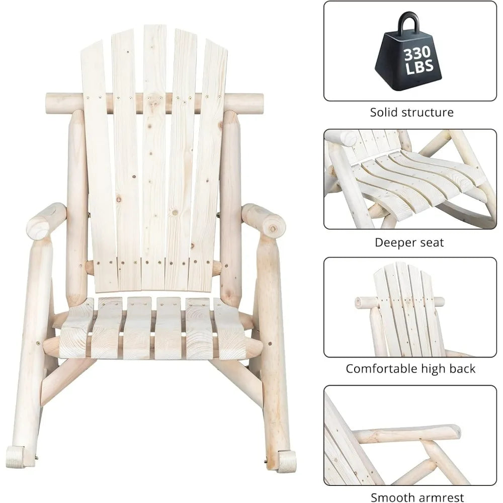 With a classic log finish, this rocker adds a natural, rustic touch to any outdoor space. Its natural wood surface can be personalized with paint or patterns for DIY projects, while simple maintenance—just wiping with soapy water—keeps it looking great year-round.