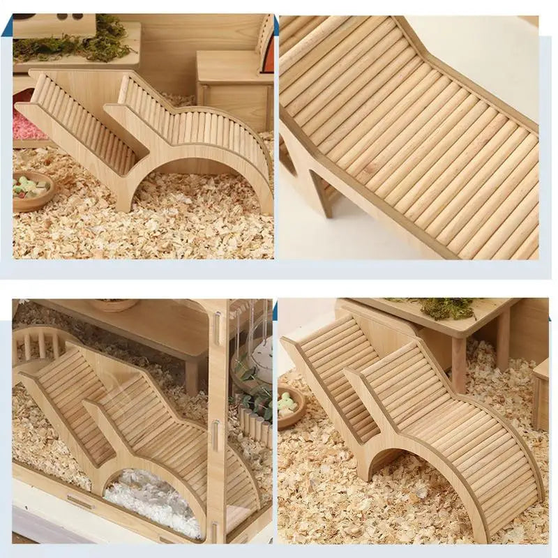 Wooden Small Animal House with Ladder Tunnel Playground Toys