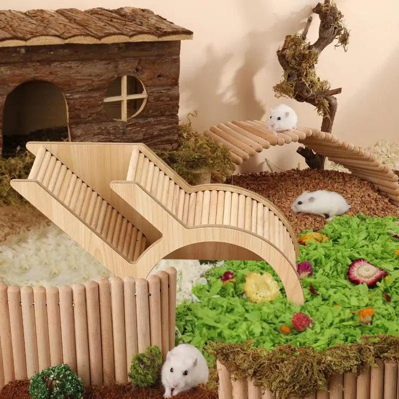 Product Name: Wooden Small Animal House with Ladder, Tunnel & Playground Toys – Natural Fun for Hamsters, Mice & Gerbils