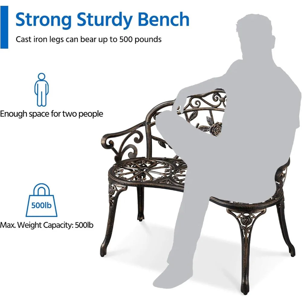 Durable for All Outdoor Spaces: Made with sturdy aluminum and a rust- & water-resistant finish, this park-style metal bench is perfect for gardens, patios, backyards, parks, and even antique-style outdoor café seating.